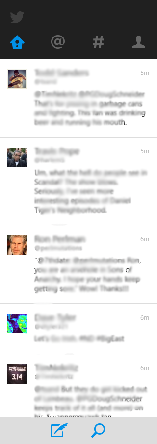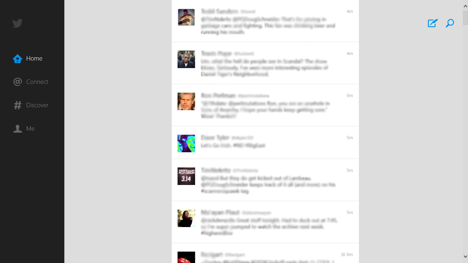 Taking a quick look at the app, it’s fairly nice, but very minimal. When it’s snapped to the narrow side of your screen, it very closely resembles the new version of the Windows Phone Twitter app, but when it’s set to full screen or it’s snapped to the wide portion of the screen, it looks very sparse and empty. The app doesn’t seem to support columns or multiple accounts (not yet, at least), so all you see is a single column, no matter how you have the app positioned on your screen.